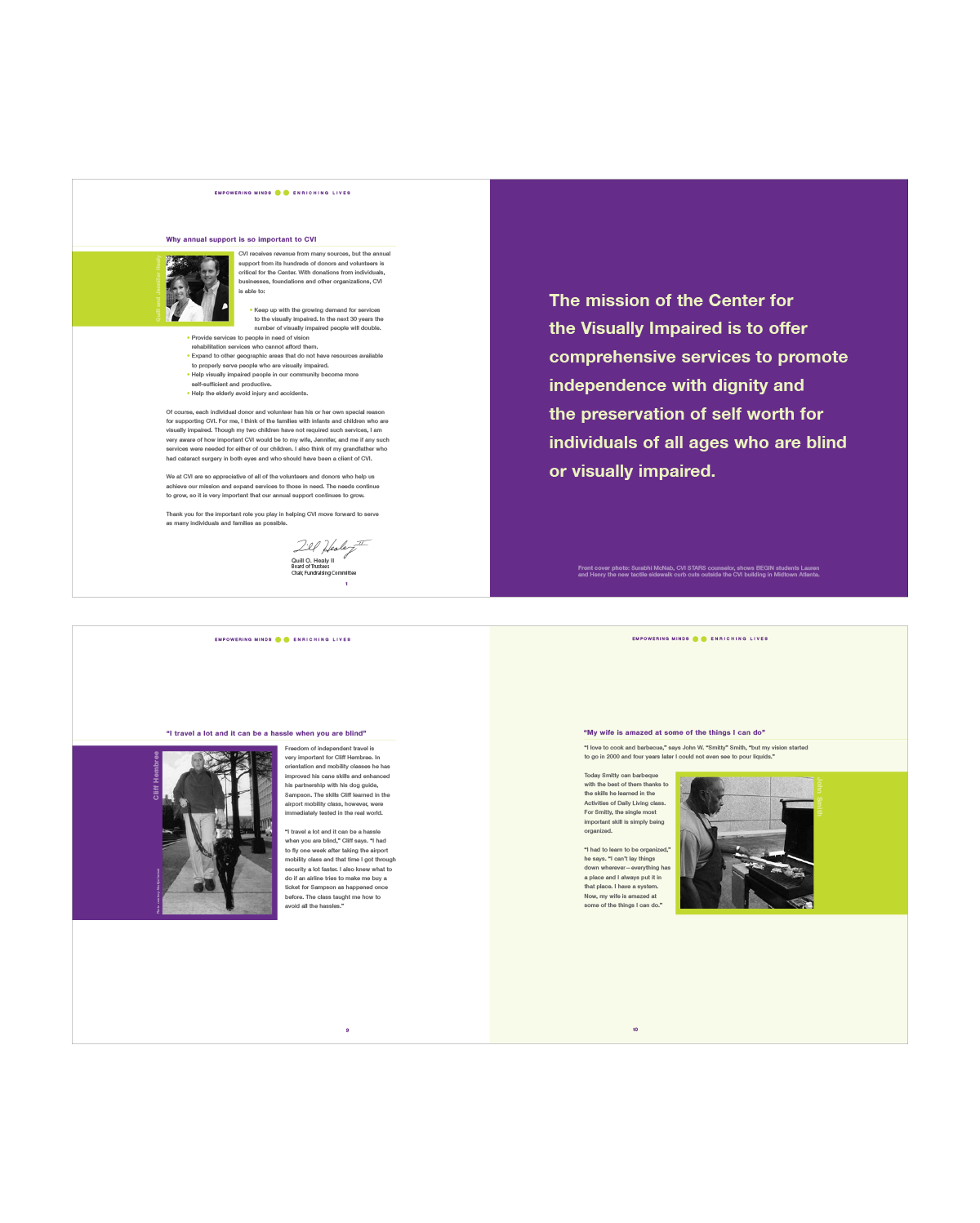 Annual report to the shareholders and donors of the Center for the Visually Impaired.